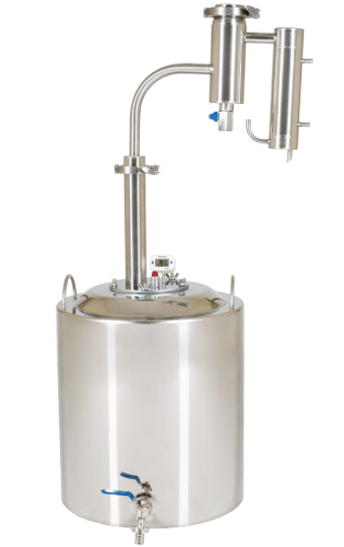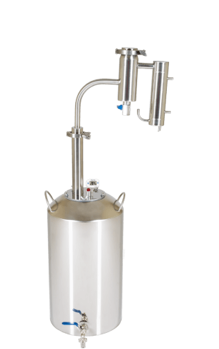 Заключительный этап очистки — сухопарник с краном для слива. На его стенках происходят повторная конденсация и переиспарения спирта. Одновременно с эффективной очисткой происходит и ароматизация напитка. (Попробуйте добавить в сухопарник цедру лимона или ароматные травы).