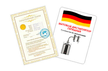 Заводская гарантия на дистиллятор Германия — 10 лет, но фактический срок службы аппарата при правильной эксплуатации неограничен.